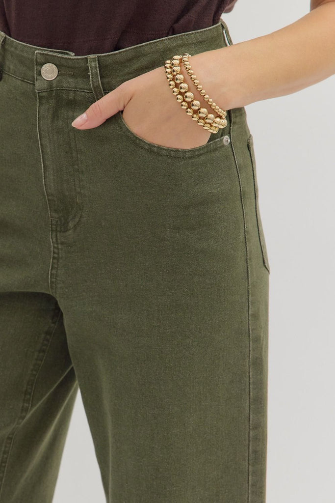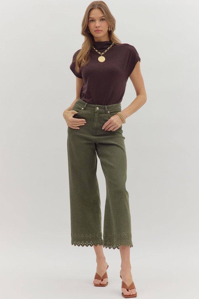 These high-waisted ankle-length pants showcase a delicate floral embroidered border hem, adding a trendy, feminine flair to your fall wardrobe. Made from a comfortable blend of cotton, polyester, and spandex, they offer the perfect balance of softness and stretch. Featuring a classic button fly with zipper closure and traditional jean pockets, the Forever Yours Pant combines timeless details with seasonal style.