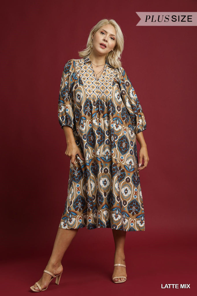 Step into the magic of twilight with the Forest Sunsets Dress. This playful midi features a vibrant abstract print and a flattering V-neck that adds a touch of charm. The 3/4 length balloon sleeves bring a fun, breezy vibe, perfect for dancing through the evening. Lightweight and unlined, it’s your go-to for effortless style and comfort all day long.