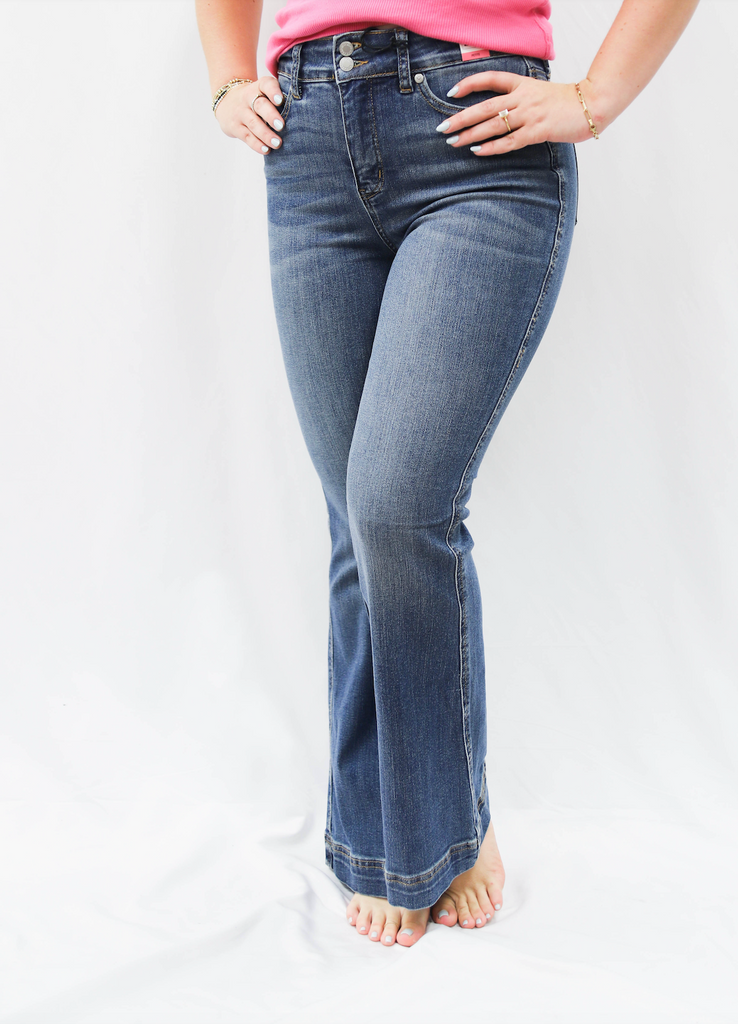 Judy Blue PETITE HW Tummy Control Double Button Flare Jean