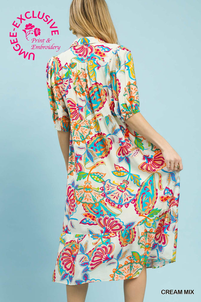 Make a statement in this eye-catching paisley print maxi dress that's equal parts bold and breezy. The split V-neck with collar detail adds a touch of sophistication, while relaxed 3/4 sleeves with elastic cuffs keep things comfortably casual. A tiered hem and flowing silhouette create effortless movement, perfect for everything from weekend adventures to laid-back gatherings. Fully lined for confidence and comfort all day long.