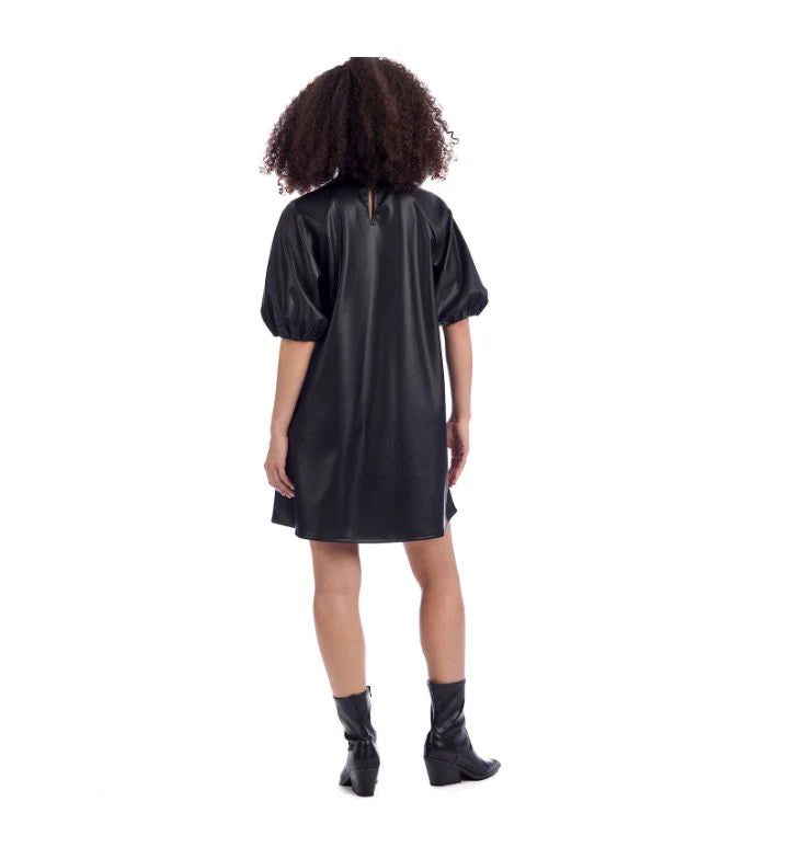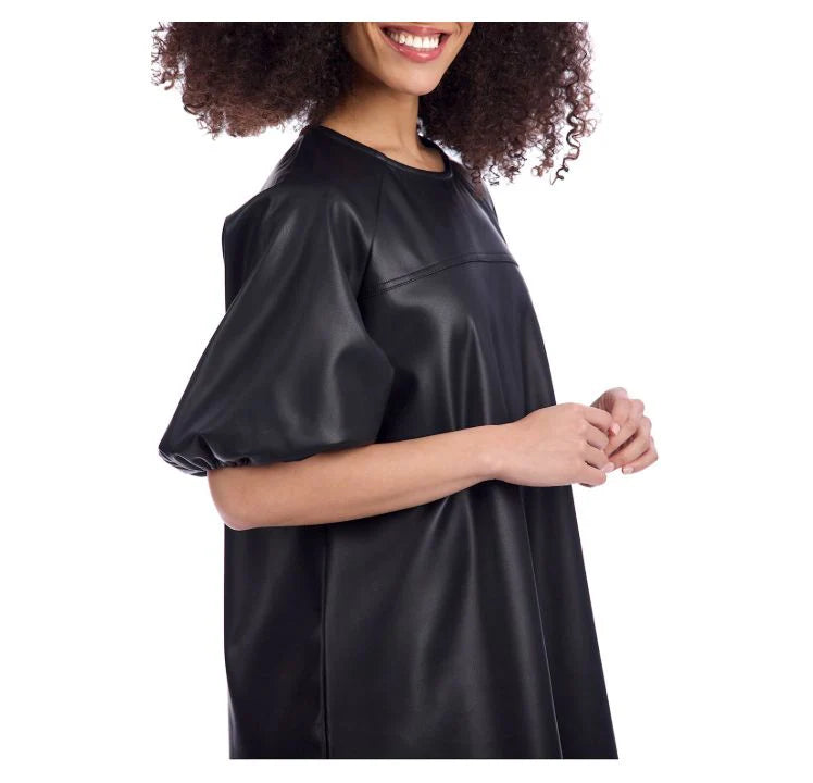 The Raine Leather Dress is a chic and modern addition to any wardrobe, crafted from high-quality faux leather that offers a sleek and stylish look. This dress features elegant balloon short sleeves that add a touch of sophistication and flair to its design. With a length of approximately 35 1/2 inches from shoulder to hem on a size small, it provides a flattering silhouette that is perfect for various occasions. Available in three sizes—small, medium, and large—this dress ensures a comfortable fit for different body types. Made from 100% polyester with a polyurethane coating, it combines durability with a luxurious feel, making it a versatile piece for both day and night events.