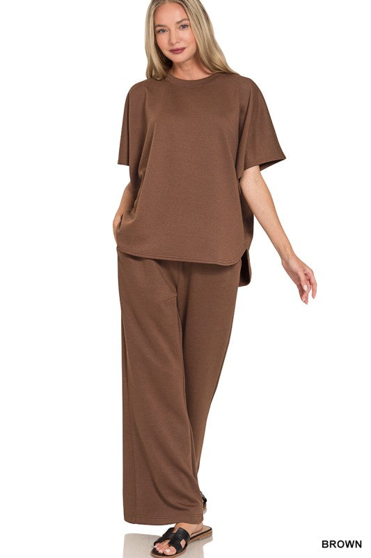 Dive into effortless style with the All I Want Top, featuring a chic scuba fabric and playfully curbed hem that adds just the right amount of edge. Perfect on its own or paired with our matching pants for a coordinated look that says "I've got this." Comfortable, versatile, and ready for whatever your day brings.