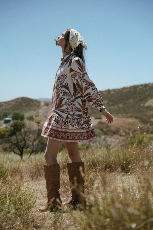 Embrace autumn charm with the Birch Bark Dress, featuring long puff sleeves and a flattering collared neckline. Its delicate lace trim and ruffled hem add subtle elegance, while the front button-down design and side pockets offer practical comfort. Perfect for crisp fall days, this floral dress blends vintage-inspired details with everyday ease.