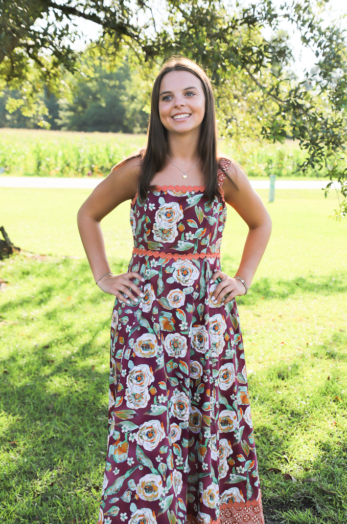 Step into autumn with the Bringing In Fall Dress, a playful midi that dances with floral prints and contrast accents. Its adjustable shoulder straps and empire waist flatter every figure, while the smocked back and zipper make for easy wear. Lightweight and lined, this woven dress features handy side pockets—perfect for stashing little treasures as you twirl through the season.