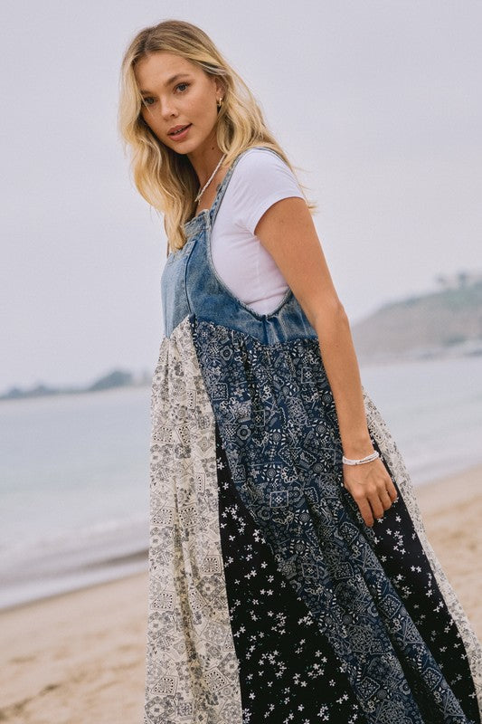 Bring fun to your wardrobe with the Mixed Up Pieces Dress! This playful washed denim top overall pairs perfectly with a patchwork skirt that adds a pop of personality. Featuring a handy pocket, it’s perfect for stashing little essentials as you go. Embrace a quirky, youthful vibe wherever you wear it!