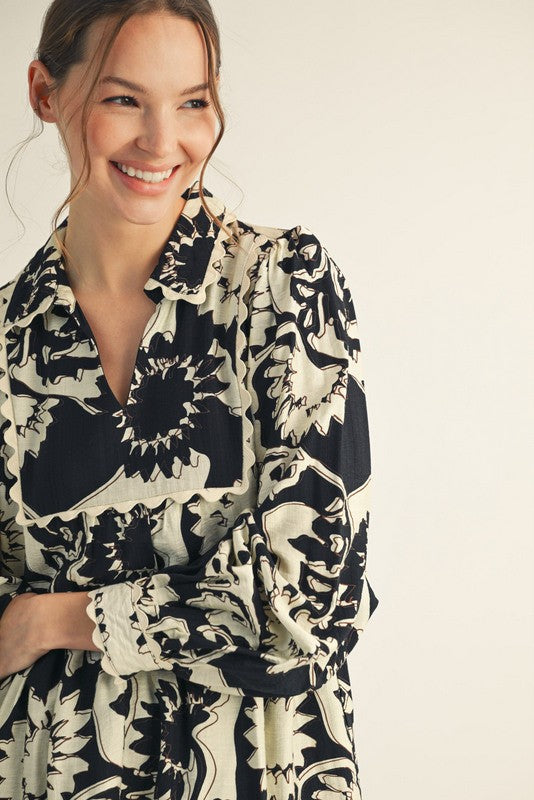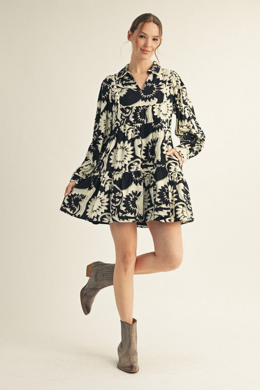 Step into charm with the Ric Rac Patty Whack Dress, featuring long sleeves and a playful tiered silhouette. The delicate floral pattern pops with whimsical ric rac tape trim, while a crisp collared V-neck adds a touch of sweet sophistication. Perfect for days when you want to combine comfort and fun flair effortlessly.