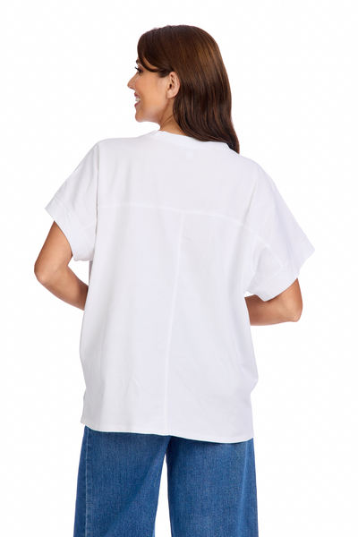 Get ready to sparkle and shine in our Bride Gold Tinsel Top! This cotton blend top features dolman short sleeves and a side slit hem, making it comfortable and stylish. Plus, the tinsel appliqués will make you stand out from the crowd. Perfect for any bride, this one-size-fits-most top measures approximately 27" from shoulder to hem.