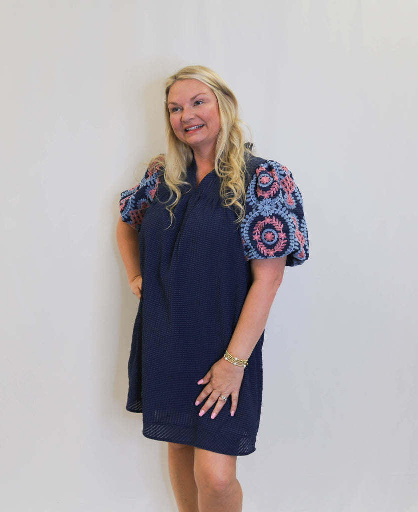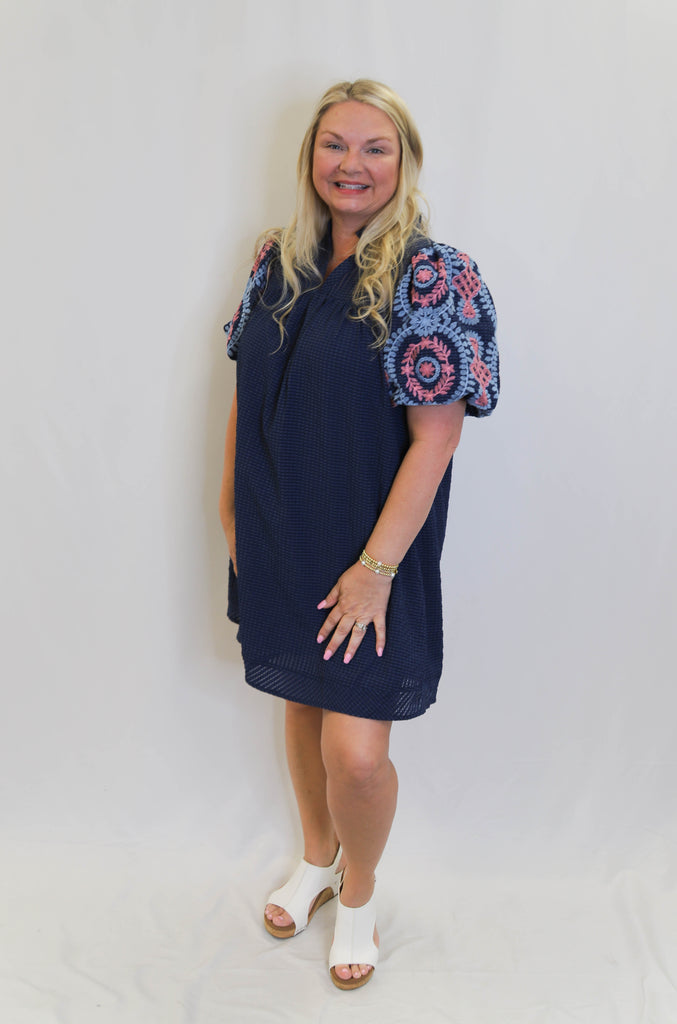 Get ready to twirl in our Do A Dance Dress! Made with 89% polyester and 11% nylon, this lined dress features seersucker material and an embroidered sleeve for a touch of whimsy. Perfect for any occasion, it's sure to bring a smile to your face (and maybe a few dance moves too)!