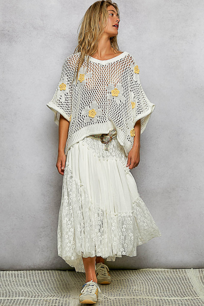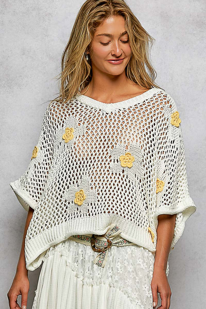 Embrace those sunny days in the Bring In The Sun Sweater—a breezy cotton knit that's all about effortless style. The relaxed V-neck silhouette and sleeveless design keep things cool and comfortable, while charming floral patches add a touch of whimsy. Soft outseam rolling edges give it that coveted lived-in feel, and the lightweight fabric makes it perfect for layering over your favorite tees or wearing solo when the weather's warm. Simple, sweet, and ready to brighten your wardrobe.