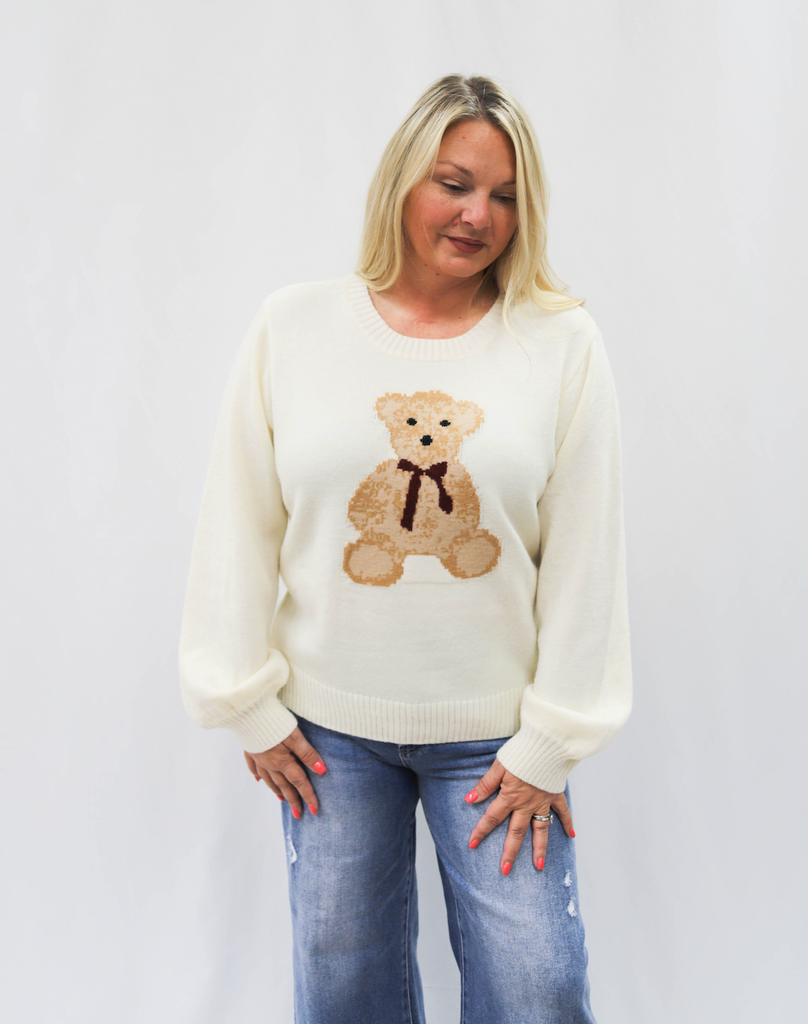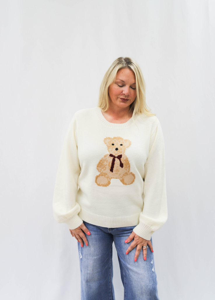 Wrap yourself in cozy charm with the For The Love Of Teddy Sweater. This soft, warm sweater features long sleeves and an adorable teddy bear design that adds a playful touch to your outfit. Perfect for chilly days when you want to stay snug and stylish with a hint of whimsy.