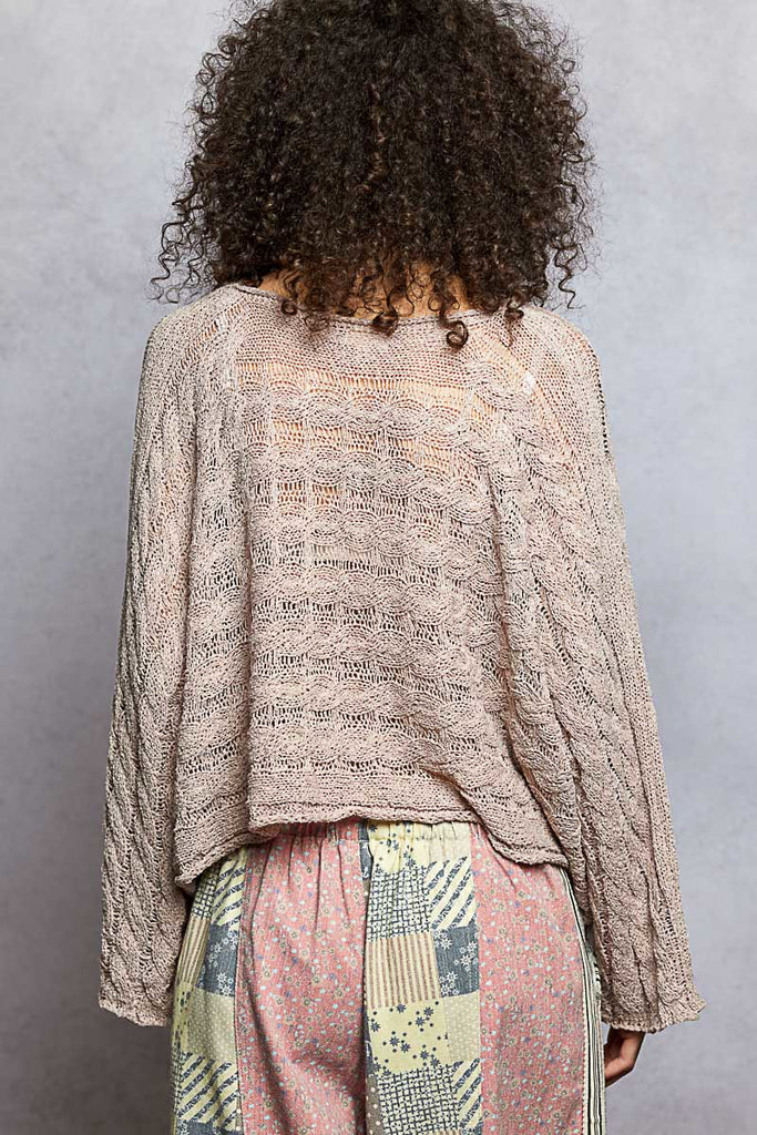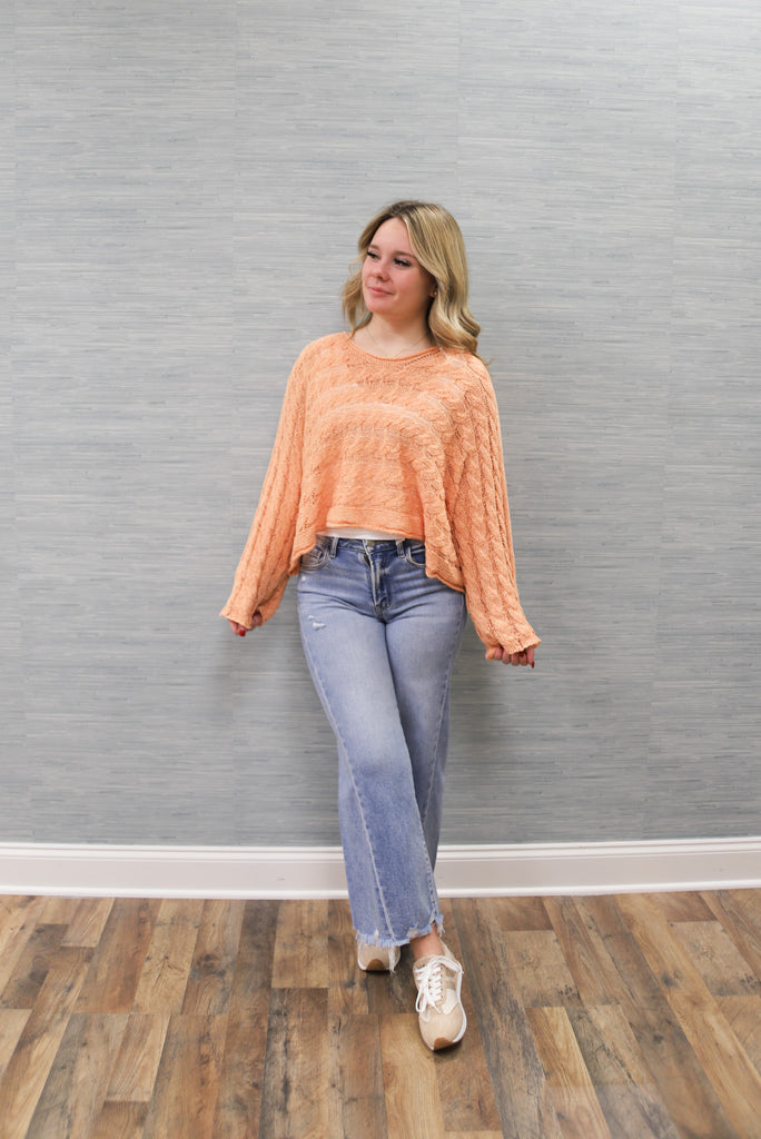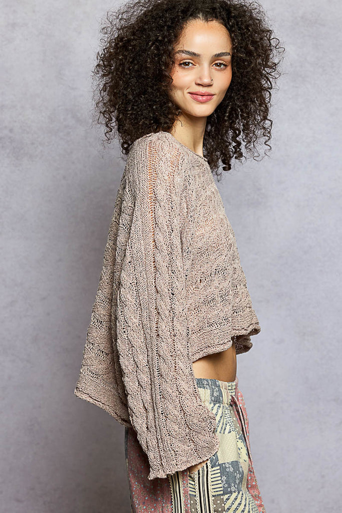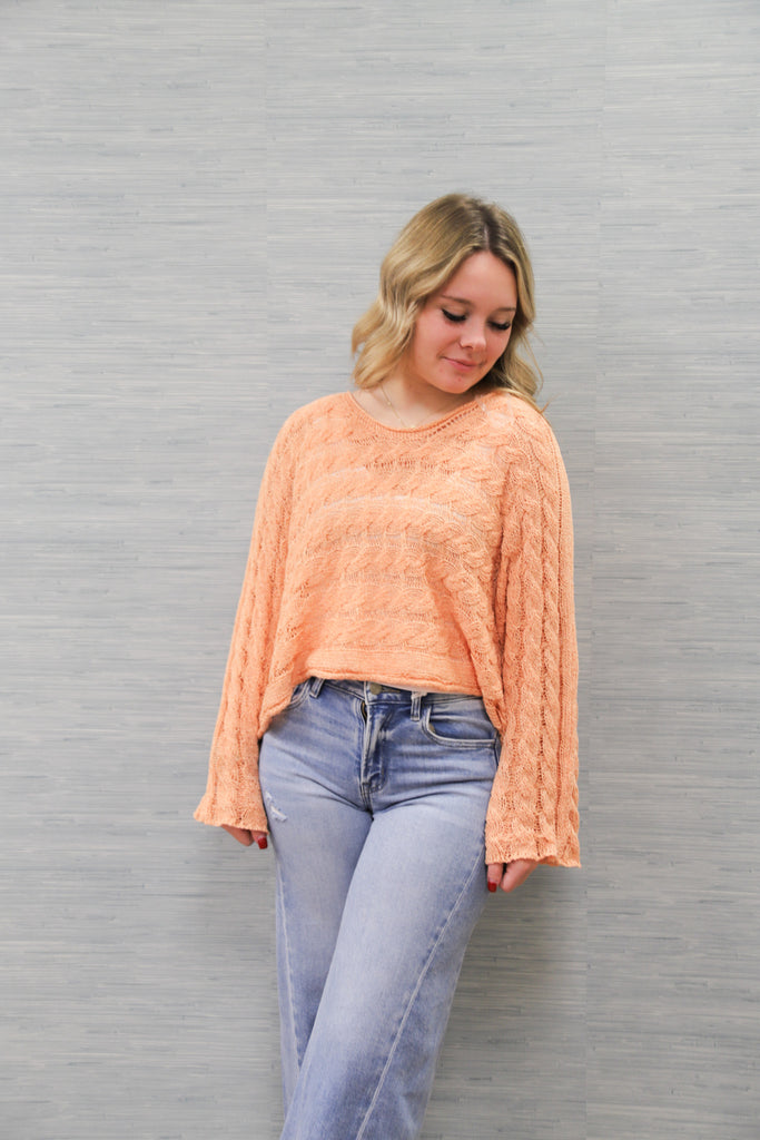 Introducing the Slightly Cover Me Sweater—your new go-to for effortless cool. This cropped acrylic sweater features a cozy round neckline and a playful twisted cable pattern with pointed details that add just the right amount of visual interest. The lightweight fabric keeps things breezy while the fitted silhouette flatters your frame. Perfect for layering over your favorite tees or pairing with high-waisted bottoms for that just-right coverage. Comfort meets style in this versatile wardrobe essential.