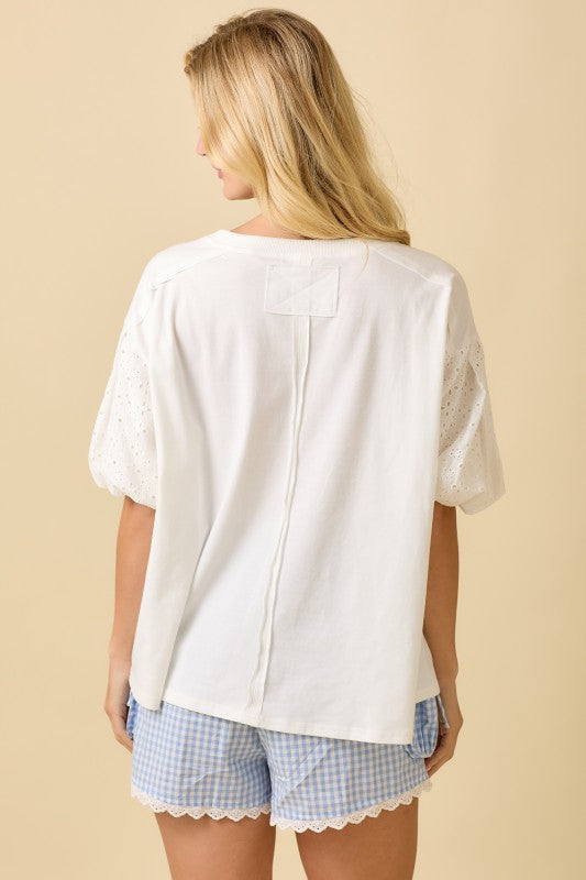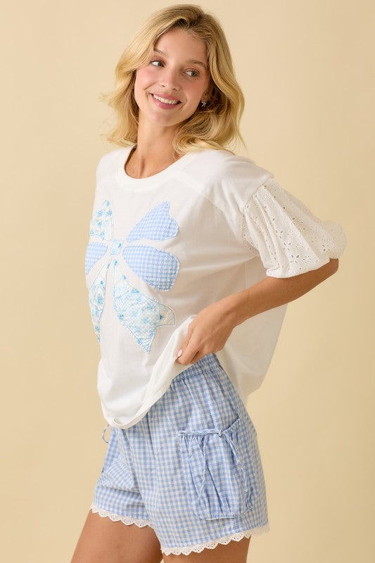 Effortlessly chic and undeniably playful, the Broken Ties Top brings a relaxed coastal vibe to your everyday wardrobe. Featuring a charming ribbon bow patchwork design paired with contrasting bubble sleeves, this piece strikes the perfect balance between whimsical and wearable. The thoughtful sleeve detail adds movement and dimension, while the patchwork front creates visual interest without overwhelming your look. Perfect for breezy days by the water or casual outings with friends, this top pairs beautifully with your favorite denim or linen pants for an effortlessly put-together aesthetic.
