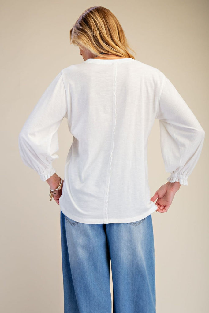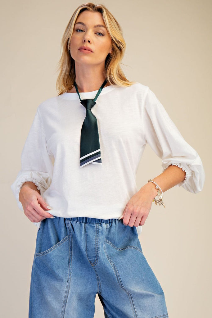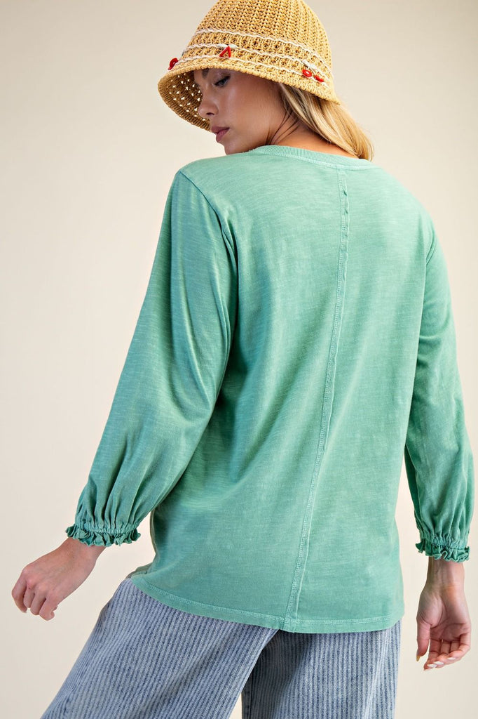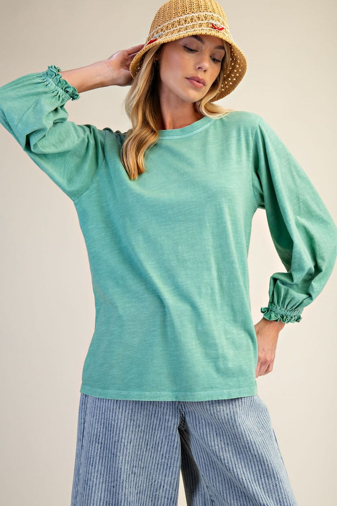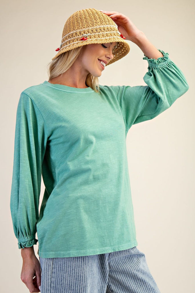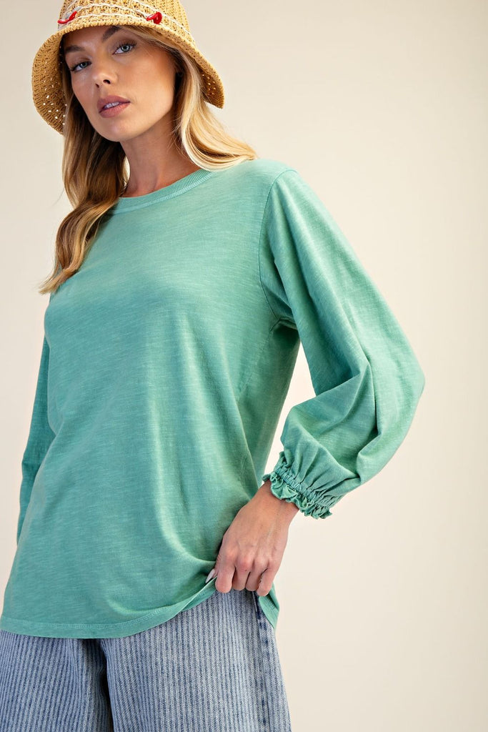 Effortlessly cool and undeniably comfy, the Catch The Drift Top is your new go-to for laid-back style. Crafted from washed cotton slub knit, this piece features a relaxed silhouette that skims the body just right, paired with charming bubble sleeves that add a playful touch. The mineral wash gives it that perfectly lived-in vibe, while the classic crew neckline keeps things timeless. Throw it on with your favorite jeans and you're ready for whatever the day brings.