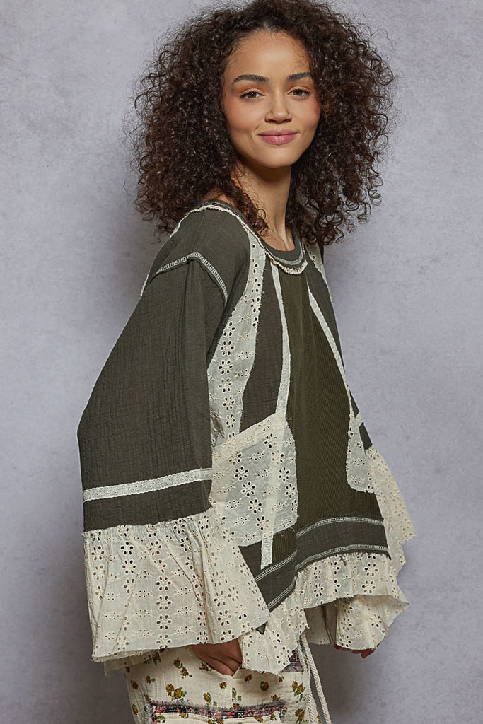 Stay cozy and stylish in the Go With The Flow Top! This relaxed-fit, round-neck design features breezy three-quarter sleeves and unique details like thermal and eyelet patches, front pockets, and raw edges. Crafted from soft double gauze, it promises comfort with a playful twist. Perfect for effortless layering or solo wear, it’s your new go-to for casual, cool vibes.