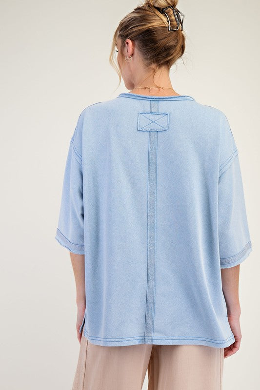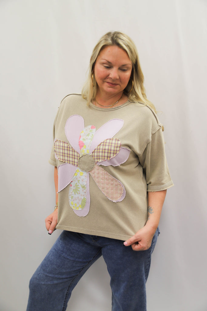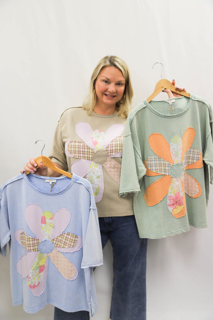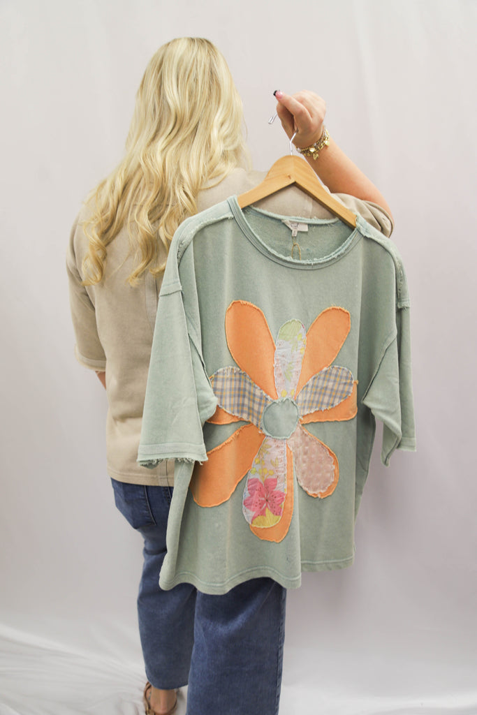 Unleash your inner flower child with Granny's Flower Scrap Top! This terry knit tunic boasts a mix of printed flower patches, raw cut and frayed seams, and a relaxed, boxy silhouette for a fun and carefree look. Plus, the side slits and dropped shoulders add extra comfort. Made with 100% cotton for a soft and cozy fit. Get your groove on!