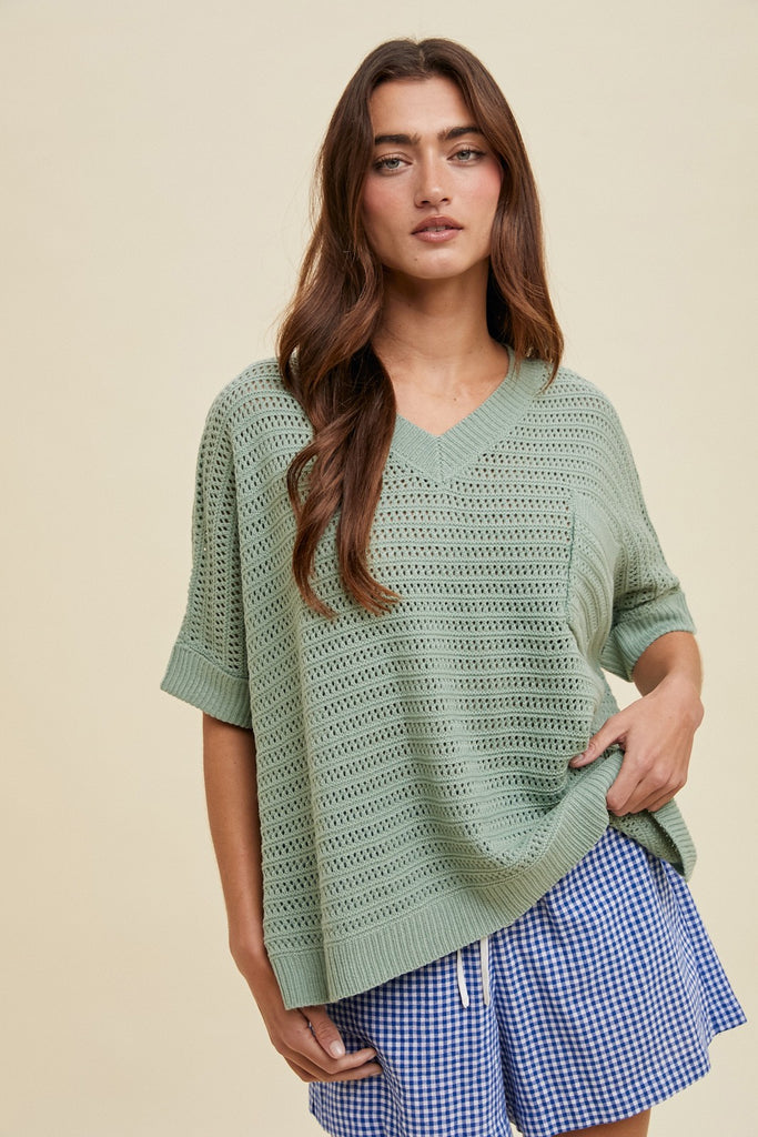 Get ready to conquer the day in our I Did It All Top! This oversized open-knit sweater top features side slits for added flair. Made from 100% acrylic, it's comfy and stylish. Perfect for every adventure!