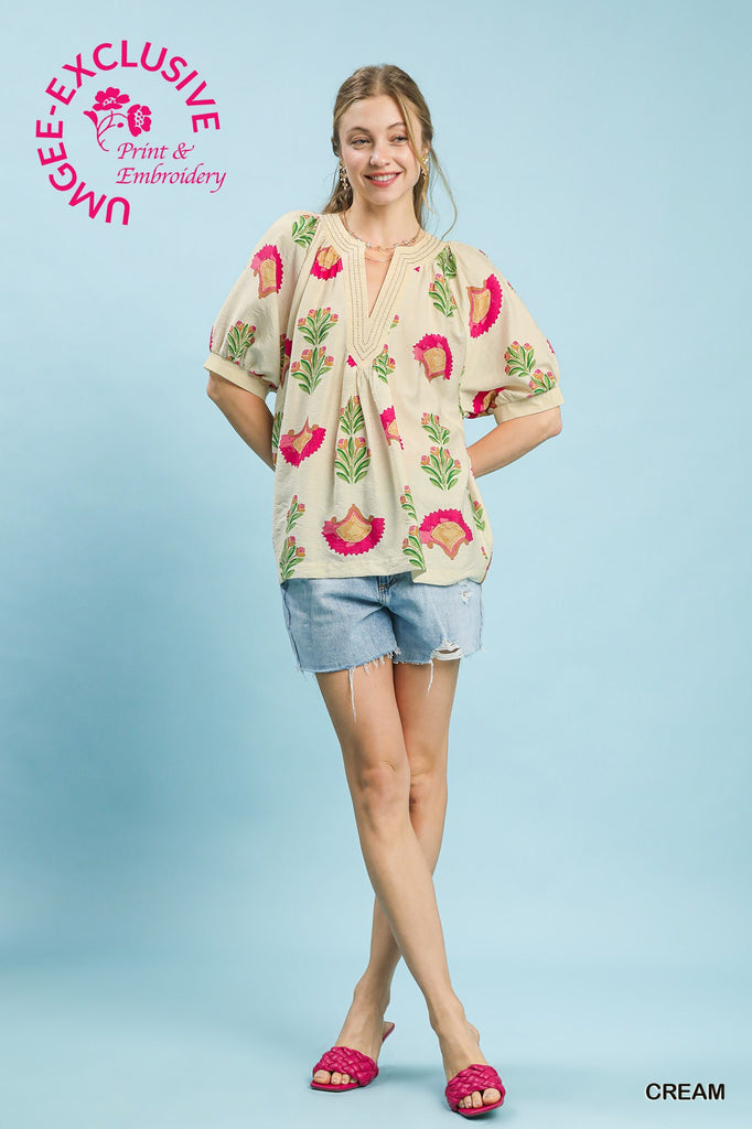 Effortless coastal style meets artistic flair with this abstract print top. The relaxed V-neckline and breezy short sleeves make it perfect for warm days, while contrast stitching adds a subtle design detail. Unlined for maximum breathability, this piece transitions seamlessly from beach outings to casual weekday wear. A versatile wardrobe essential that captures laid-back elegance.
