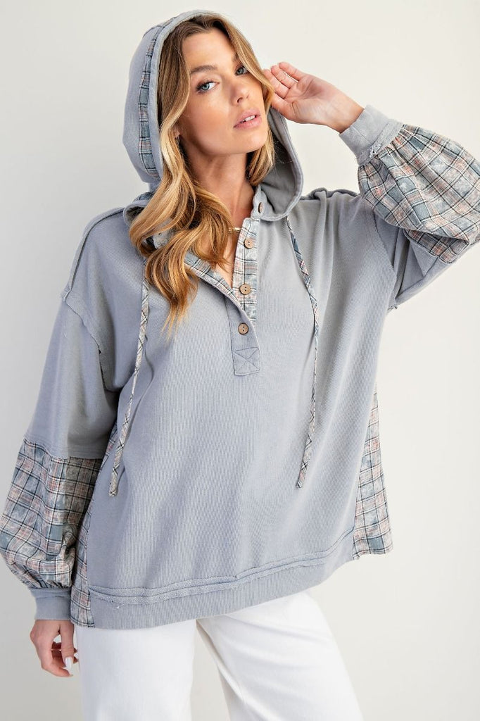 Cozy meets cool in the Something Blue Hoodie! Mineral washed for that perfectly worn-in vibe, it features a button-front placket and fun balloon sleeves with elastic cuffs for extra flair. The adjustable hood with drawstrings keeps things snug when you want, while the relaxed, loose fit lets you move and groove all day long. Perfect for those laid-back days with a hint of playful style!