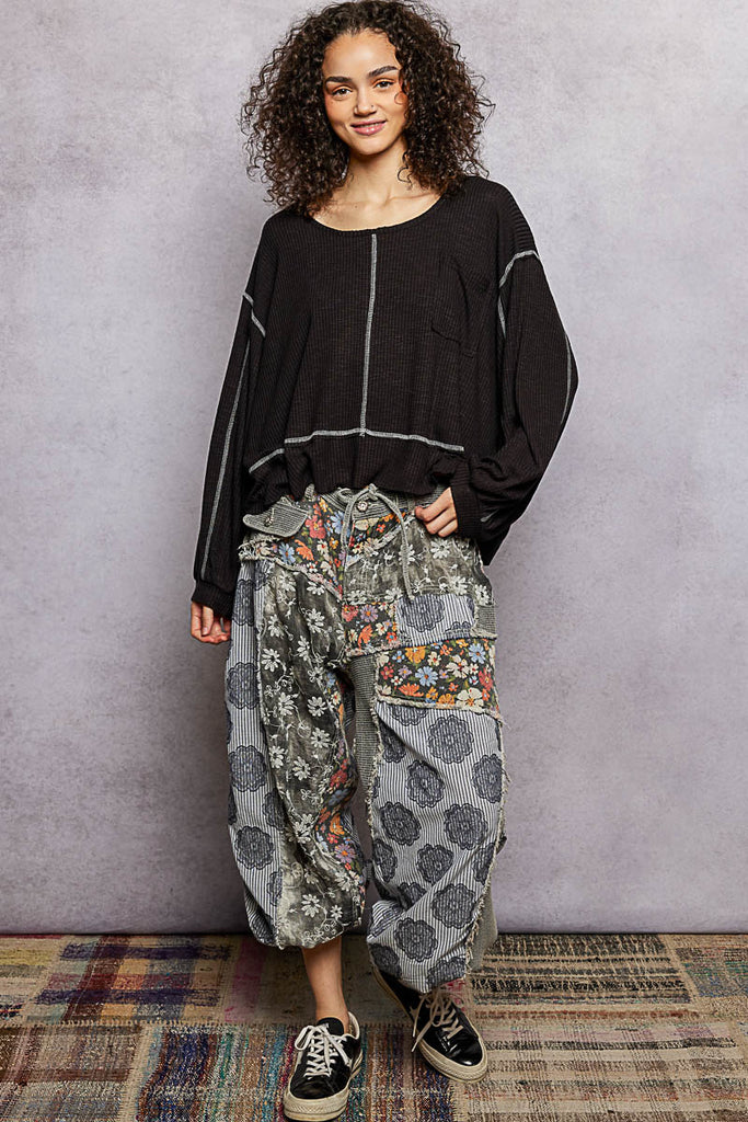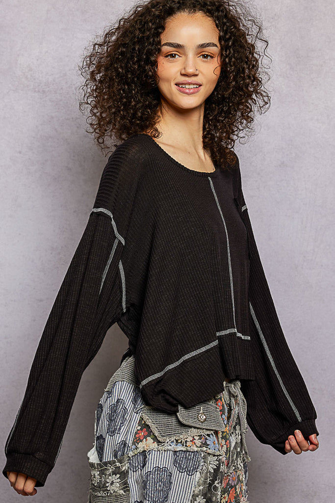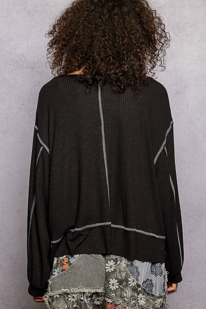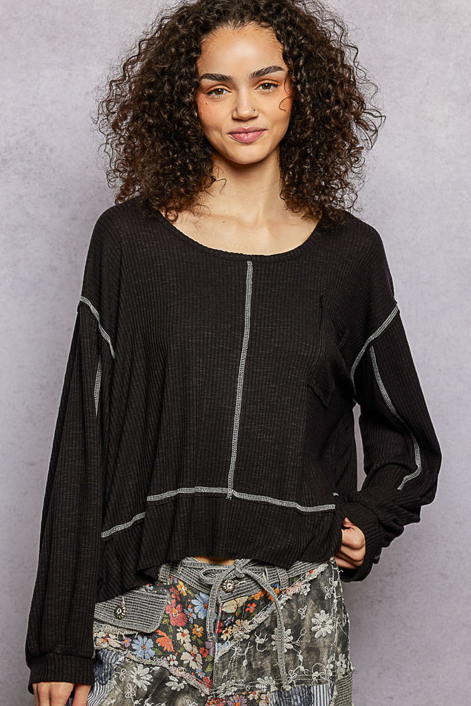 The Go To Top is your new wardrobe essential—a relaxed-fit long sleeve tee that feels as good as it looks. Crafted in soft rib fabric with a flattering round neckline, this piece features thoughtful details like outseaming for a polished silhouette, a functional chest pocket, and playful contrast stitching that adds personality. Finished with binding at the neck for durability and comfort, it's the kind of top you'll reach for again and again, whether you're keeping it casual or dressing it up.