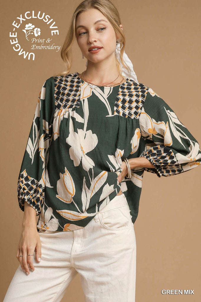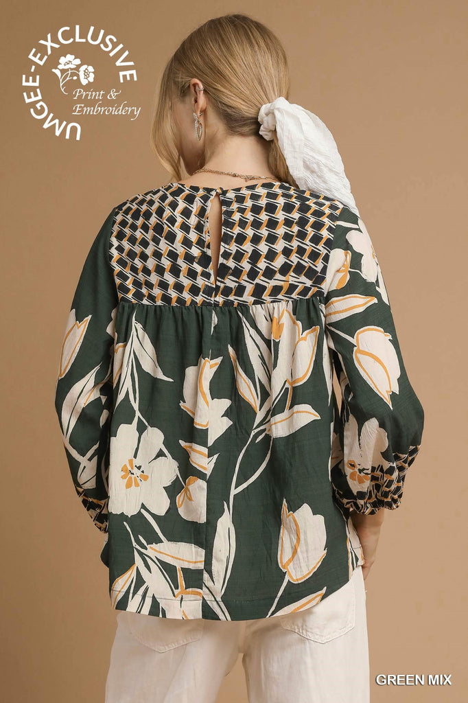 Brighten your wardrobe with the What I Like About You Top, featuring a cheerful floral print and a contrasting yoke for a fun twist. The round neckline and back button closure add playful details, while long sleeves with elastic cuffs keep the look effortlessly relaxed. Designed with a flowy silhouette, this top offers comfort and style without lining, perfect for breezy days and easy layering.