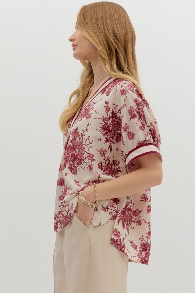 Embrace effortless charm with the Woodland Top, a playful oversized pullover featuring a vibrant floral print and colorful band accents. Its short dolman sleeves and lightweight woven fabric keep you cool and comfy, while the unlined, non-sheer design adds breezy ease to your look. Perfect for adding a splash of fun to any casual outfit!